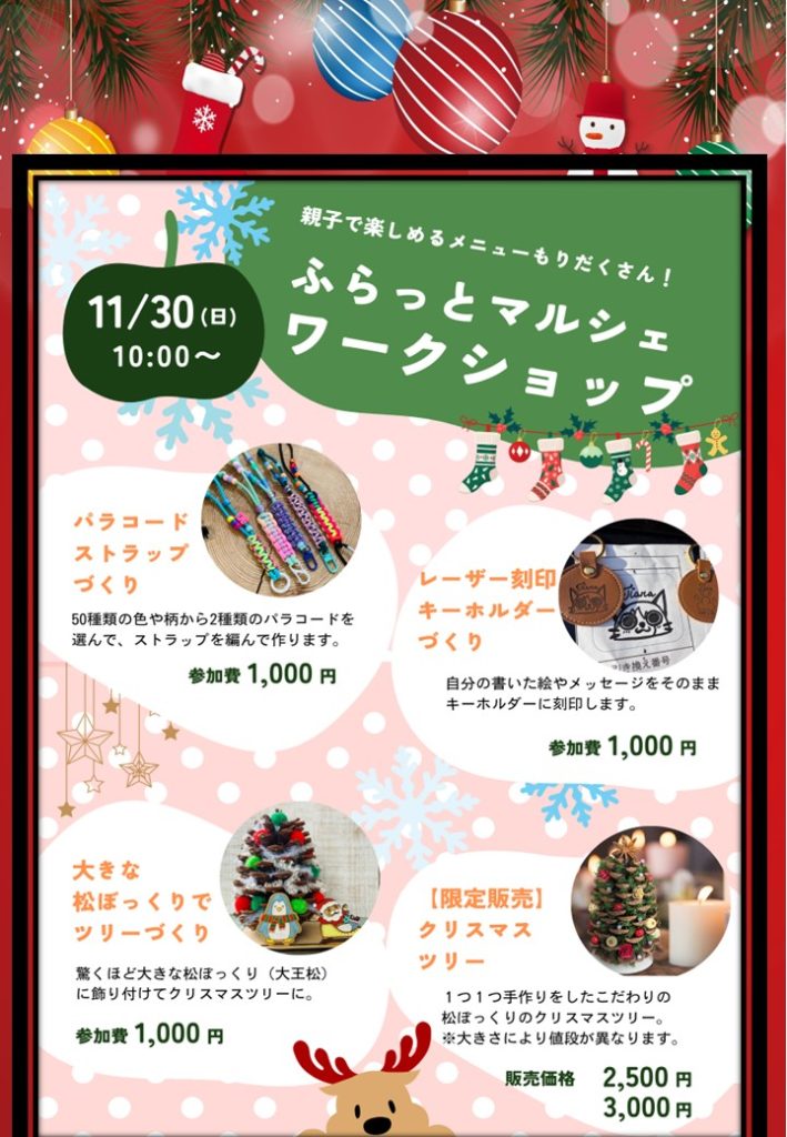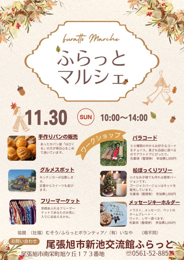 毎年恒例の「ふらっとマルシェ」が11月30日(日曜日)開催されます。
