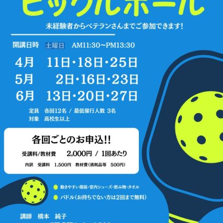 【4月からの新講座】ピックルボール