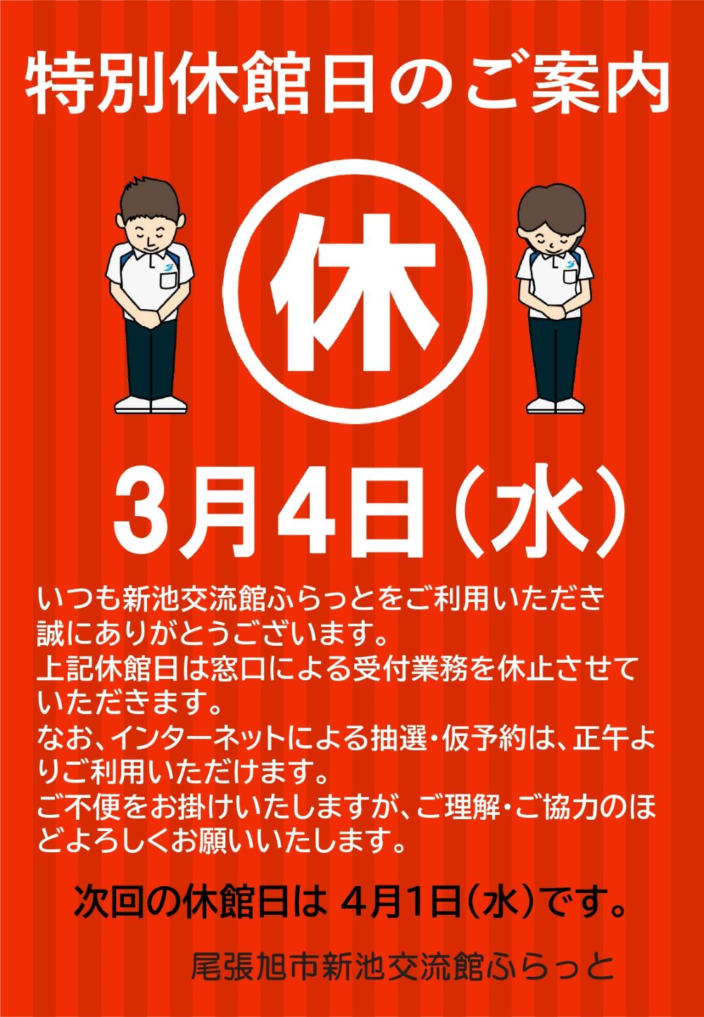 いつも新池交流館ふらっとをご利用いただき、誠にありがとうございます。