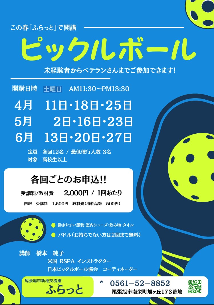 【4月からの新講座】ピックルボール